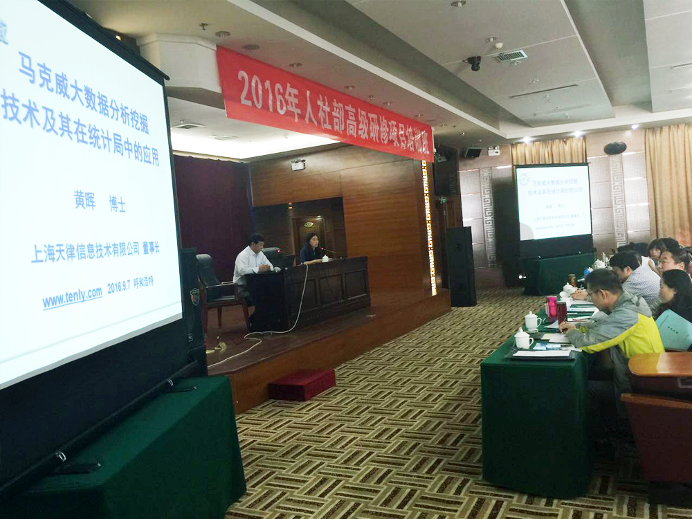 發(fā)布日期:2016-09-08金秋9月,上海天律信息技術(shù)有限公司董事長黃暉博士受邀擔(dān)任2016年人社部高級研修項(xiàng)目培訓(xùn)班特約講師,為各?。▍^(qū)、市)統(tǒng)計(jì)局、新疆生產(chǎn)建設(shè)兵團(tuán)統(tǒng)計(jì)局?jǐn)?shù)據(jù)管理(計(jì)算)中心(處),國家統(tǒng)計(jì)局各調(diào)查總隊(duì)信息化和信息安全工作相關(guān)負(fù)責(zé)人帶來一場關(guān)于大數(shù)據(jù)分析挖掘技術(shù)發(fā)展趨勢的科技風(fēng)暴。