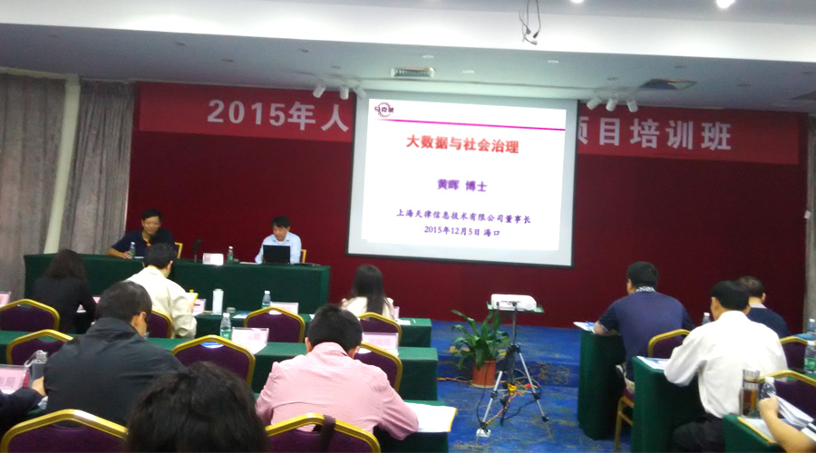 發(fā)布日期:2015-12-052015年12月5日應(yīng)國家統(tǒng)計局邀請,我司董事長黃暉博士作為演講嘉賓參加了在海口舉辦的 "全國統(tǒng)計局?jǐn)?shù)管中心領(lǐng)導(dǎo)干部培訓(xùn)講座"。黃博士演講的題目為"大數(shù)據(jù)與社會治理""大數(shù)據(jù)與統(tǒng)計局",分享內(nèi)容包括大數(shù)據(jù)應(yīng)用的理論基礎(chǔ)、大數(shù)據(jù)的技術(shù)選擇,以及大數(shù)據(jù)與統(tǒng)計局工作應(yīng)用等等。